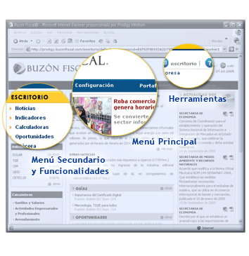 Cada sección cuenta además con su propio "Submenú" de opciones una vez que ha ingresado y éstos a su vez con una serie de "Funcionalidades" para el uso del servicio.