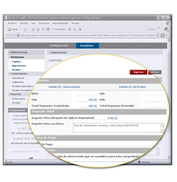 Considere que el sistema hace el pre-cálculo del importe total una vez que se captura el monto correspondiente a cada impuesto; sin embargo, usted podrá editar esta información en caso de necesitarlo.