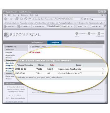 Los CFD's validados son almacenados en su buzón, podrá consultarlos cuando lo requiera accesando a la opción "Archivo Recibidos" del submenu "Comprobantes".